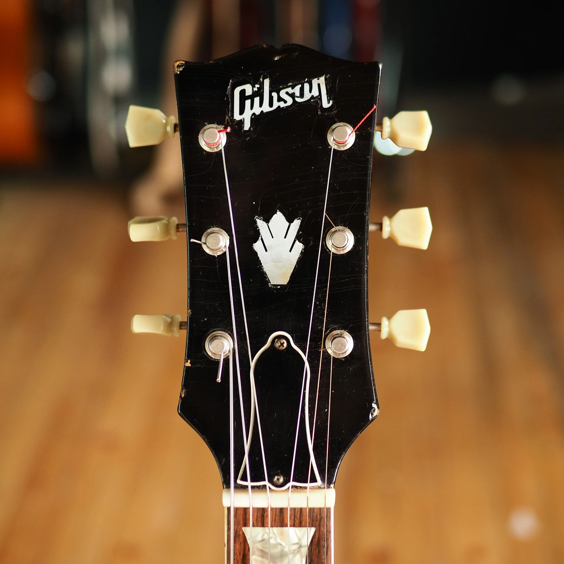 Repairs: the bridge has been reglued at some point, and the inlay on the headstock looks like it's been repaired.