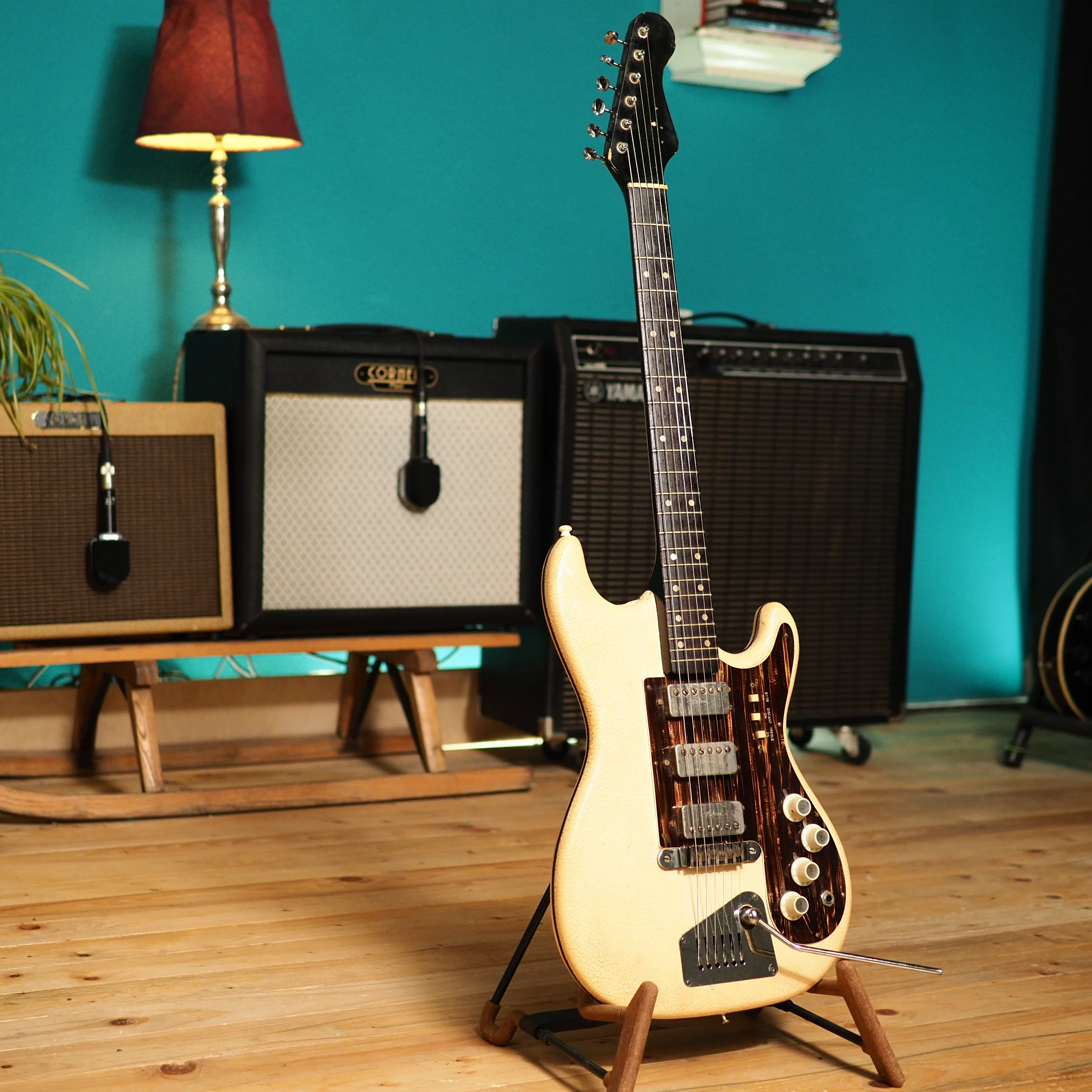 Condition: good, without any repairs and ready to play. The vinyl has yellowed, and it has shrunk a bit around the neck pocket. The tuners have been replaced (the newer ones are Fender-style and a lot better than the originals